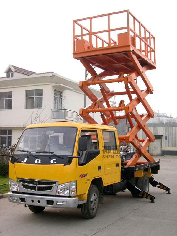 車載式升降平臺采用各種車底盤加固平臺底架,利用本車動力在變速箱上輸出驅(qū)力油泵來操作的,無需外接電源,操作靈活簡單、移動方便、機(jī)動性強(qiáng)、工作范圍大??蛙嚳筛鶕?jù)需求選用解放、東風(fēng)、江鈴、福田等車型;該車載式升降機(jī)廣泛應(yīng)用于市政建設(shè)維護(hù)、路燈維修、園林修剪、電路檢修、高速公路維護(hù)等場所的高空作業(yè);也可作為臨時性的高空照明、廣告宣傳等。